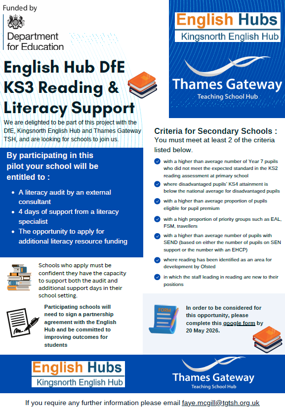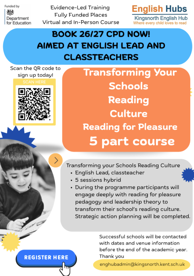 This page will share all the training opportunities from Kingsnorth School, Kingsnorth English Hub, or through Aquila.